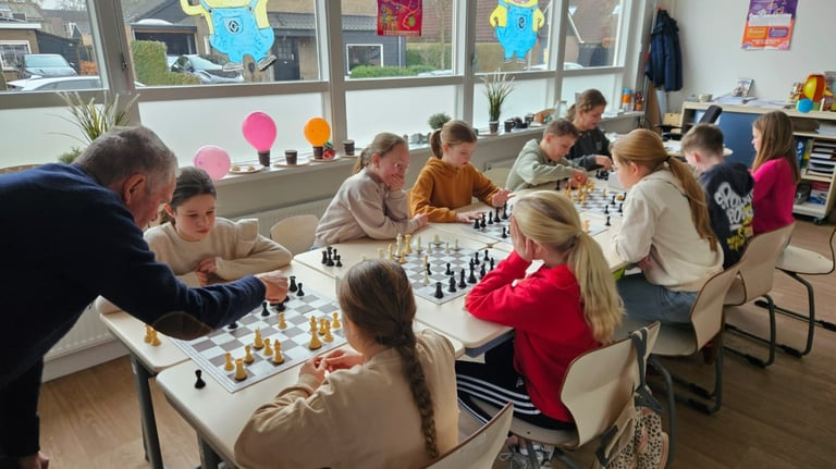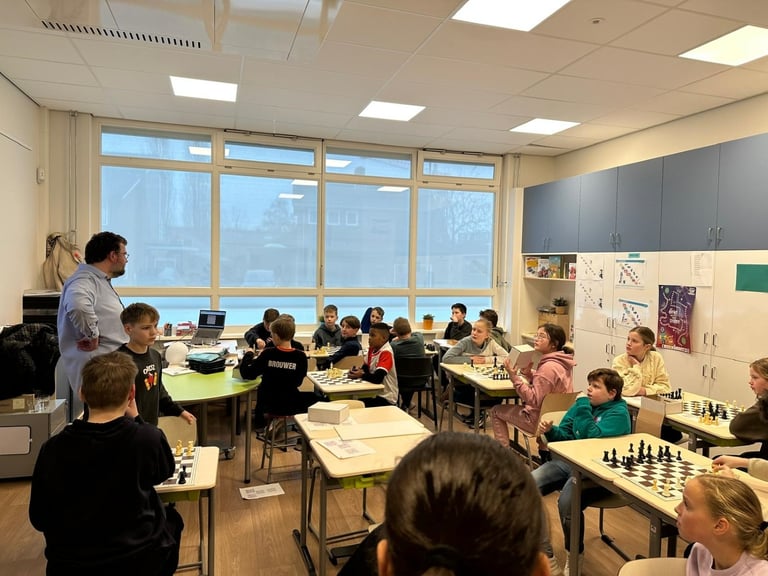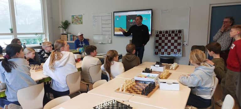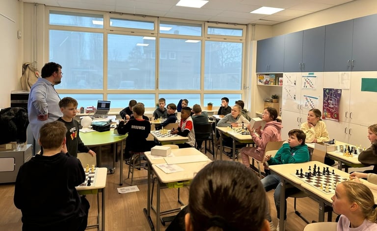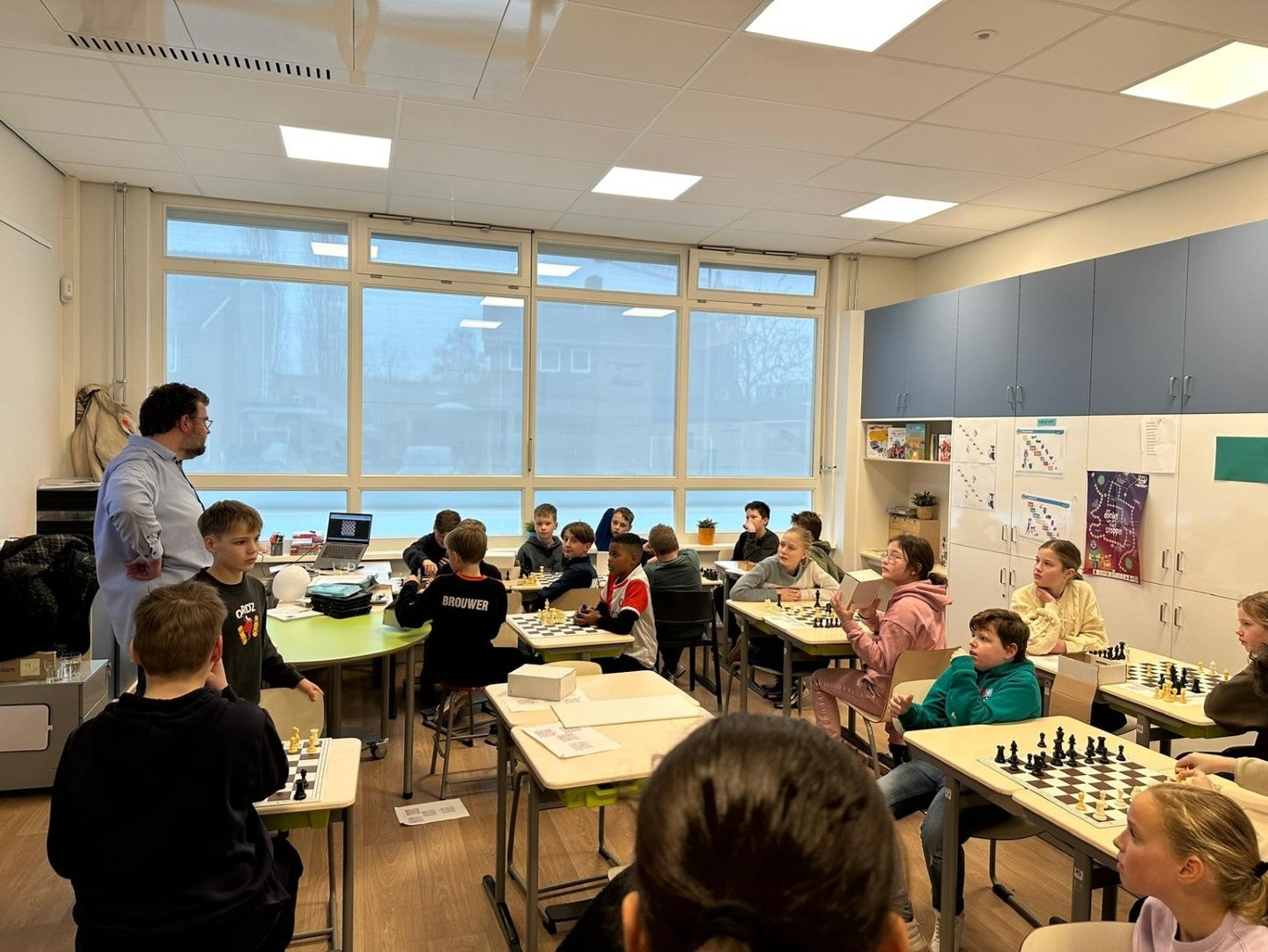 Sinds vorig jaar zijn drie leerkrachten begonnen om de leerlingen in de bovenbouw te leren schaken. Op uitnodiging van een leerkracht van de school werd er door de twee schaakverenigingen schaakles gegeven door drie schaakinstructeurs bijgestaan door vijf Nijkerkse schakers.