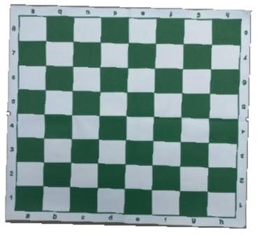 Tot mijn verbazing werd bij deze lessen geen traditioneel schaakbord gebruikt, maar een mat, van kunststof, flexibel, dat je kunt opvouwen, verfrommelen, oprollen, of wat je maar wilt. Uitgevouwen, ontfrommeld of uitgerold op de tuintafel bijvoorbeeld, kun je er ook gewoon op schaken. En dat hebben we gedaan, zittend in de tuin onder fantastisch mooie zomerse omstandigheden.