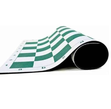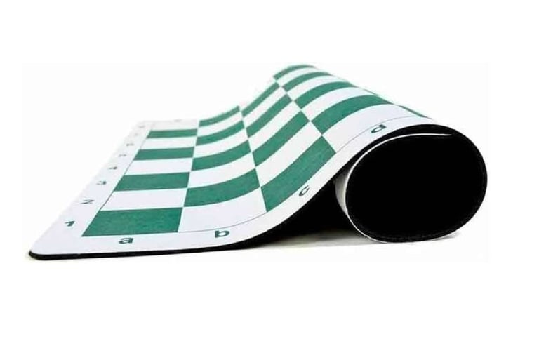 Om een lang verhaal kort te maken, ik heb dus zelf een schaakmat gekocht, op internet. Ook mijn mat kun je verfrommelen, opvouwen en oprollen.